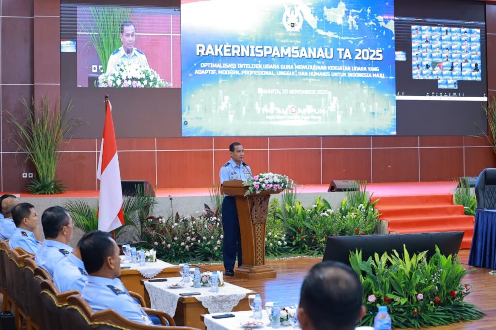 JAKARTA, Cakra101.com –. Waasintel Kasau Marsma TNI Yudy Mandega R., M.Tr., Han., mewakili Asintel Kasau Marsda TNI Mochammad Untung Suropati, S.E., membuka Rakernispamsanau Tahun Anggaran 2025 di Gedung Pramanasala, Sekkau, Jakarta, Kamis (20/11/2025).