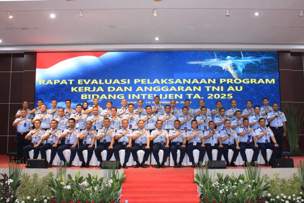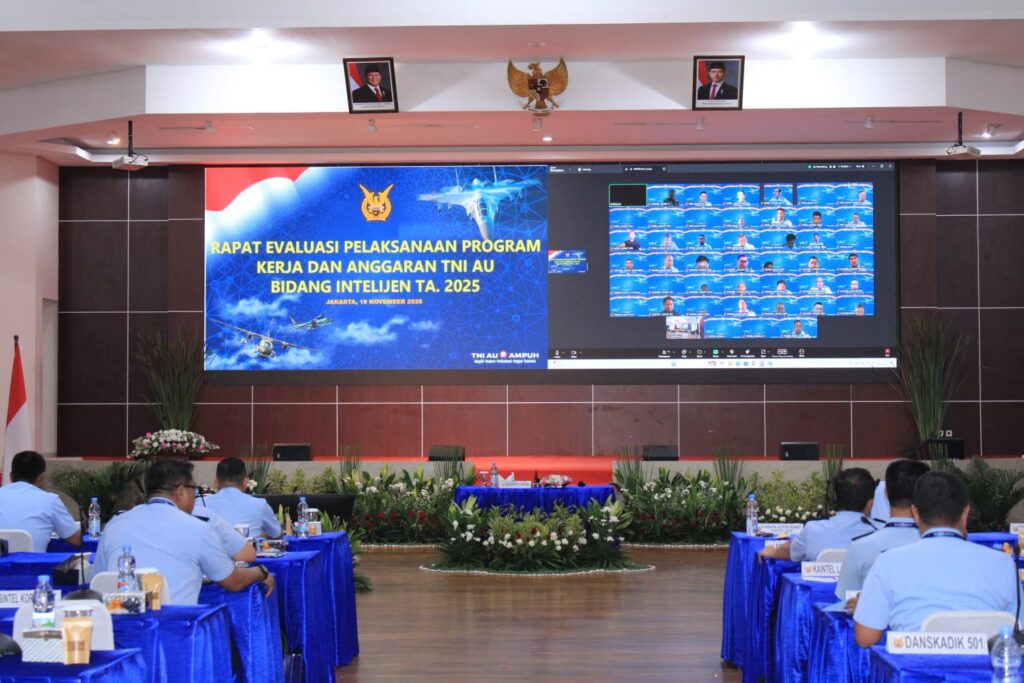 JAKARTA, Cakra101.com – Staf Intelijen TNI Angkatan Udara (Sintelau) menggelar rapat evaluasi program kerja dan anggaran bidang Intelijen Tahun Anggaran 2025 di Gedung Pramanasala Sekkau, Rabu (19/11/2025). Kegiatan ini dibuka oleh Waasintel Kasau Marsma TNI Ir. Yudy Mandega R., M.Tr. (Han)., IPM., mewakili Asintel Kasau Marsda TNI Mochammad Untung Suropati, S.E.