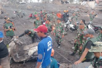 LUMAJANG, Cakra101.com – Tentara Nasional Indonesia melalui Koramil 0821-14/Pronojiwo terus memperkuat langkah pengamanan di wilayah terdampak erupsi Gunung Semeru. Dipimpin langsung oleh Danramil 0821-14/Pronojiwo, Letda Arh Sugiono, personel TNI melakukan patroli malam menyisir kawasan zona merah di Dusun Sumbersari, Desa Supiturang, Kecamatan Pronojiwo, Kabupaten Lumajang, Jumat (21/11/2025). Upaya ini dilakukan sebagai bentuk komitmen TNI dalam memastikan keselamatan warga serta menjaga stabilitas situasi di tengah potensi ancaman erupsi susulan.
