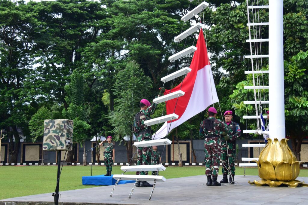Kegiatan diawali dengan pengibaran Bendera Merah Putih dan dilanjut dengan mengheningkan cipta, pembacaan teks Pancasila oleh Irup yang diikuti seluruh Prajurit dan PNS Mako Kormar, serta pengucapan Sapta Marga.
