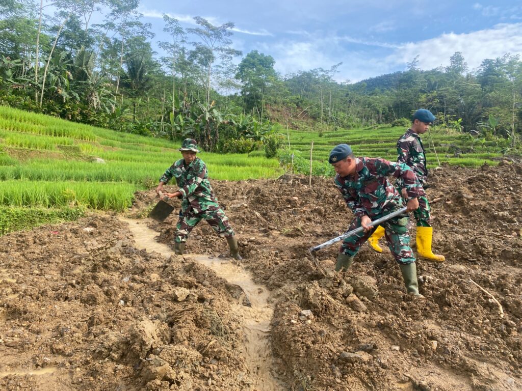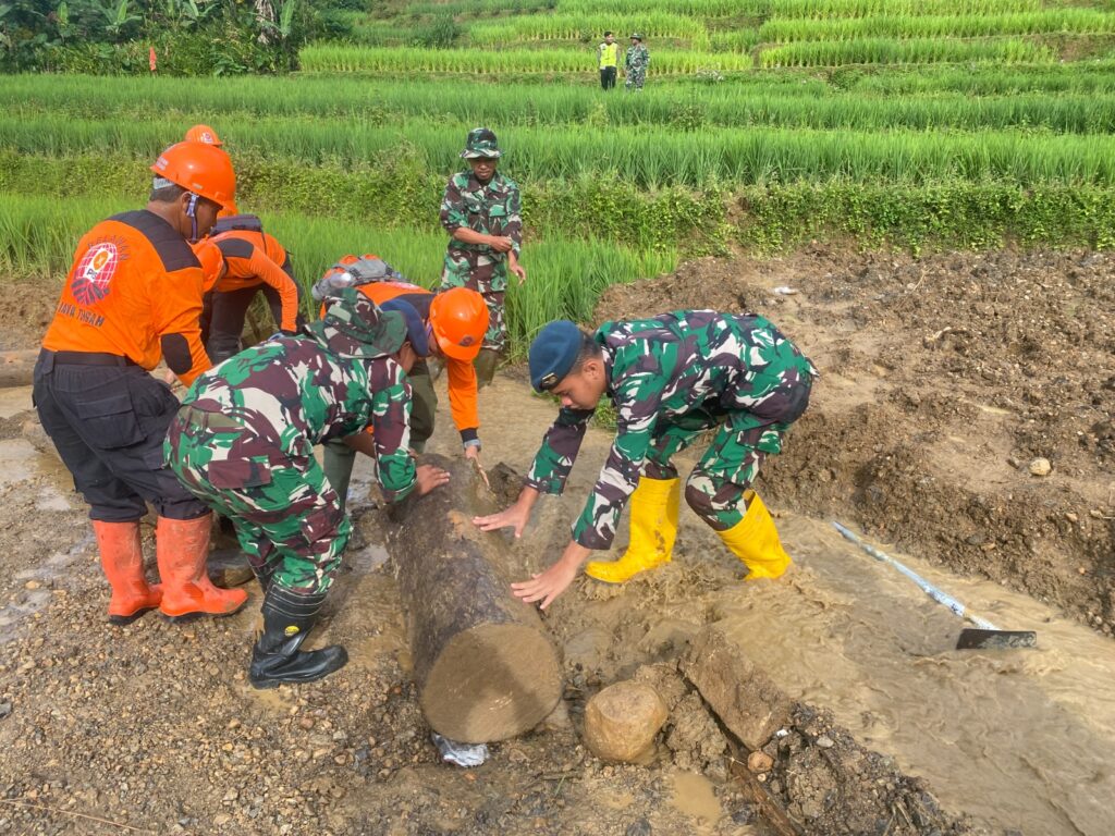 Dalam proses pencarian, prajurit memanfaatkan alkon untuk menyemprotkan air ke material longsor, sementara alat manual seperti cangkul dan sekop digunakan untuk membuat cabang jalur air dari sungai agar mempermudah pembongkaran material.
