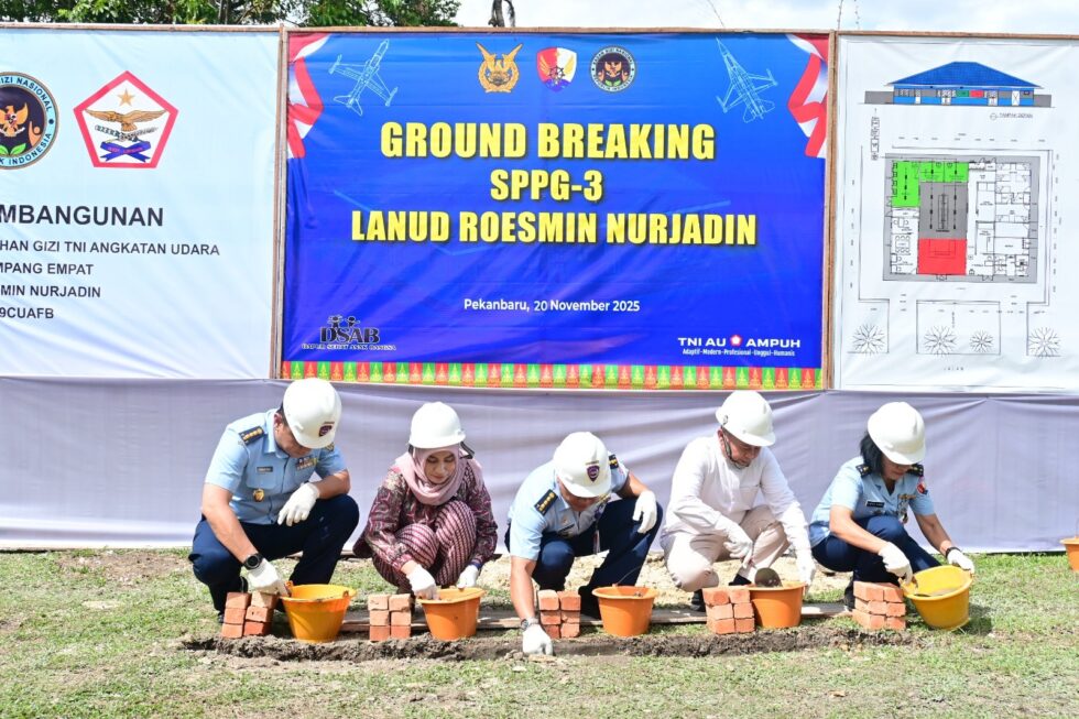 PEKANBARU, Cakra101.com – Lanud Roesmin Nurjadin memulai pembangunan Satuan Pelayanan Pemenuhan Gizi (SPPG) 3 di Jalan Rupat, Kelurahan Simpang Empat, Kecamatan Pekanbaru Kota, Kamis (20/11/2025). Groundbreaking dilakukan sebagai langkah memperluas cakupan Program Makan Bergizi Gratis (MBG) di Kota Pekanbaru.