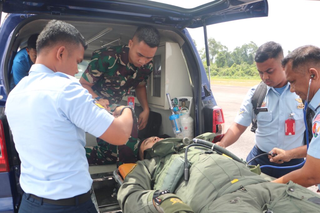 PEKANBARU, Cakra101.com – Lanud Roesmin Nurjadin menggelar latihan penanganan emergency landing pesawat tempur Hawk melalui skenario simulasi darurat, Senin (24/11/2025).