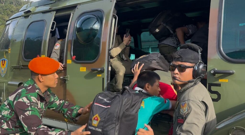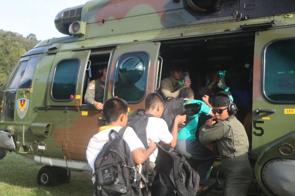 Para siswa awalnya berkumpul di Lapangan Matauli Pandan, yang dijadikan titik kumpul evakuasi. Dari lokasi tersebut, Satgas Udara mengerahkan helikopter H225M Caracal TNI AU yang dipiloti Kpt Pnb Anterio dari Skadron Udara 8, untuk mengangkut para siswa keluar dari area terdampak. Melalui beberapa sortie, helikopter menerbangkan seluruh siswa menuju Bandara FL. Tobing, Sibolga.