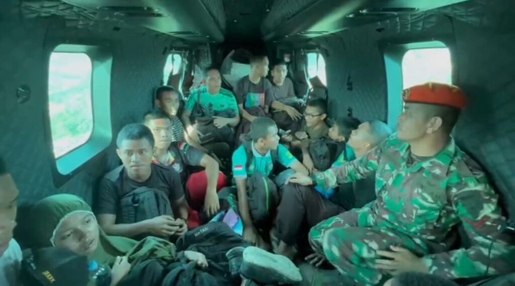 Selanjutnya, para siswa dipindahkan menggunakan pesawat angkut C-130J Super Hercules A-1340 untuk diterbangkan ke Lanud Soewondo, Medan. Langkah ini dilakukan agar para siswa dapat segera memperoleh penanganan lebih lanjut, termasuk pemenuhan kebutuhan dasar, pemeriksaan kesehatan, dan penampungan sementara di lokasi yang aman.