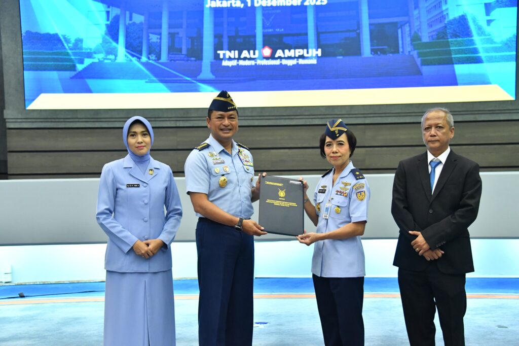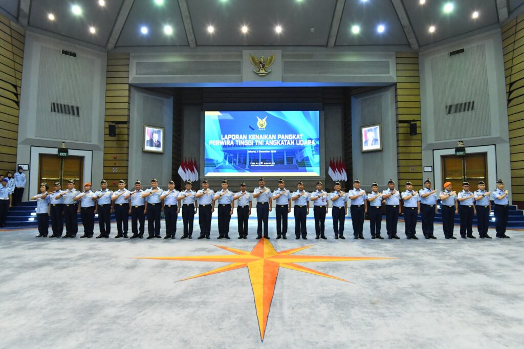 JAKARTA, Cakra101.com – Kepala Staf Angkatan Udara (Kasau) Marsekal TNI M. Tonny Harjono, S.E., M.M. menerima laporan kenaikan pangkat (Kenkat) 25 perwira tinggi (Pati) TNI AU di Auditorium I.G. Dewanto, Mabesau, Cilangkap, Jakarta Timur, Senin (1/12/2025).