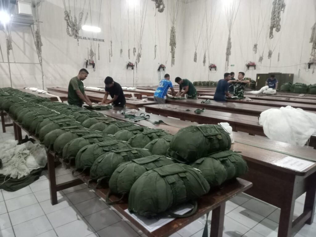 BANDUNG, Cakra101.com – Sathar 72 Depohar 70 menyiapkan 200 payung Low Cost Low Altitude (LCLA) untuk mendukung misi airdrop bantuan bagi warga terdampak bencana di Sumatera Utara, Sumatera Barat dan Aceh. Persiapan dilakukan di Hanggar Sathar 72, Margahayu, Bandung, pada Minggu (30/11/2025).