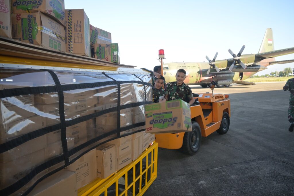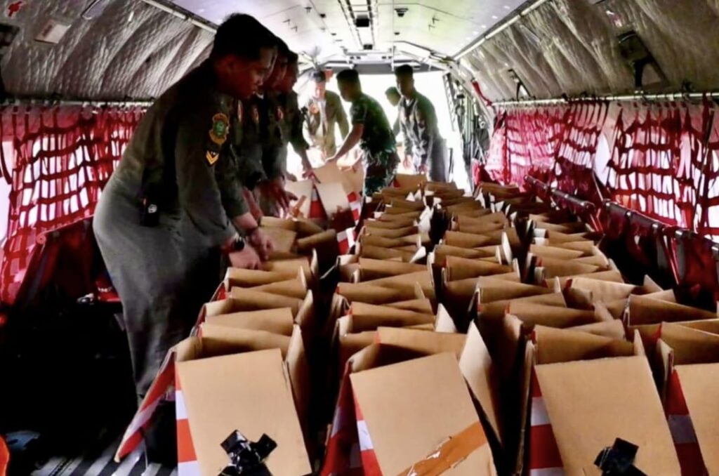Sebanyak 90 helibox berisi kebutuhan darurat diterjunkan di Drop Zone (DZ) Lapangan Bima, Aceh Tamiang. Pengiriman bantuan ini merupakan kelanjutan dari operasi serupa yang dilakukan sehari sebelumnya di Tapanuli Utara, Sumatera Utara, menggunakan pesawat yang sama.