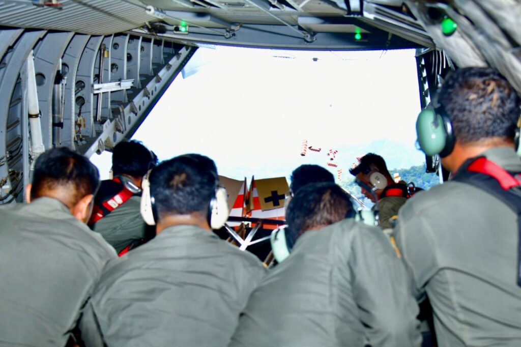 Kadispenau, Marsma TNI I Nyoman Suadnyana, S.T., M.M., menegaskan TNI AU terus memaksimalkan dukungan udara untuk mempercepat penyaluran logistik bagi warga terdampak bencana. Distribusi bantuan melalui airdrop diharapkan mampu memprcepat suplai kebutuhan pokok hingga akses darat kembali dapat dilalui.