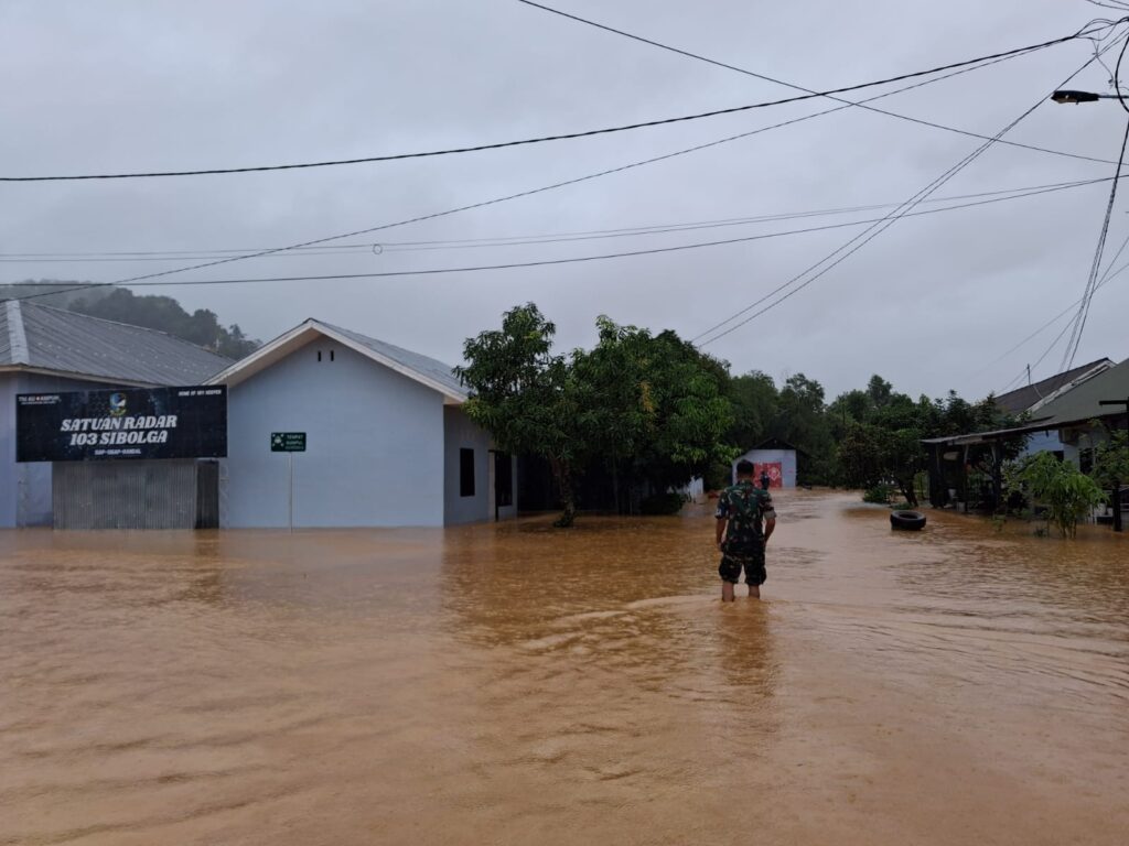 SIBOLGA, Cakra101.com – Satuan Radar 103 (Satrad 103) Sibolga turut terdampak banjir yang melanda sejumlah wilayah di Kota Sibolga. Di tengah kondisi tersebut, Komandan Satrad 103 Sibolga, Letkol Lek Heri Nur Nugroho, S.T., M.Han., mengerahkan prajuritnya untuk membantu masyarakat dalam penanganan dampak bencana.