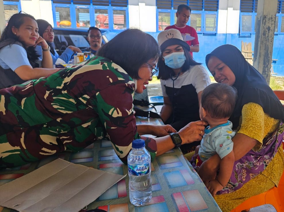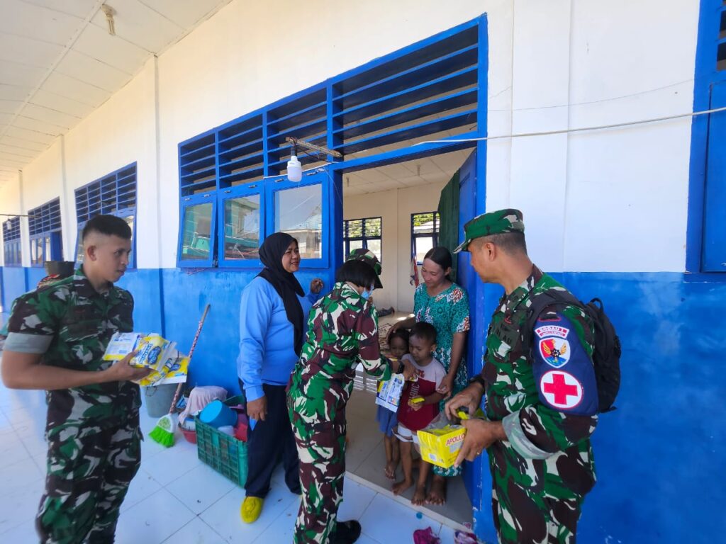Selain membuka layanan medis, tim kesehatan juga mengunjungi hunian para pengungsi untuk memantau kondisi kesehatan secara langsung. Dalam kesempatan tersebut, tim turut menyalurkan bantuan berupa pampers bagi keluarga yang memiliki balita.