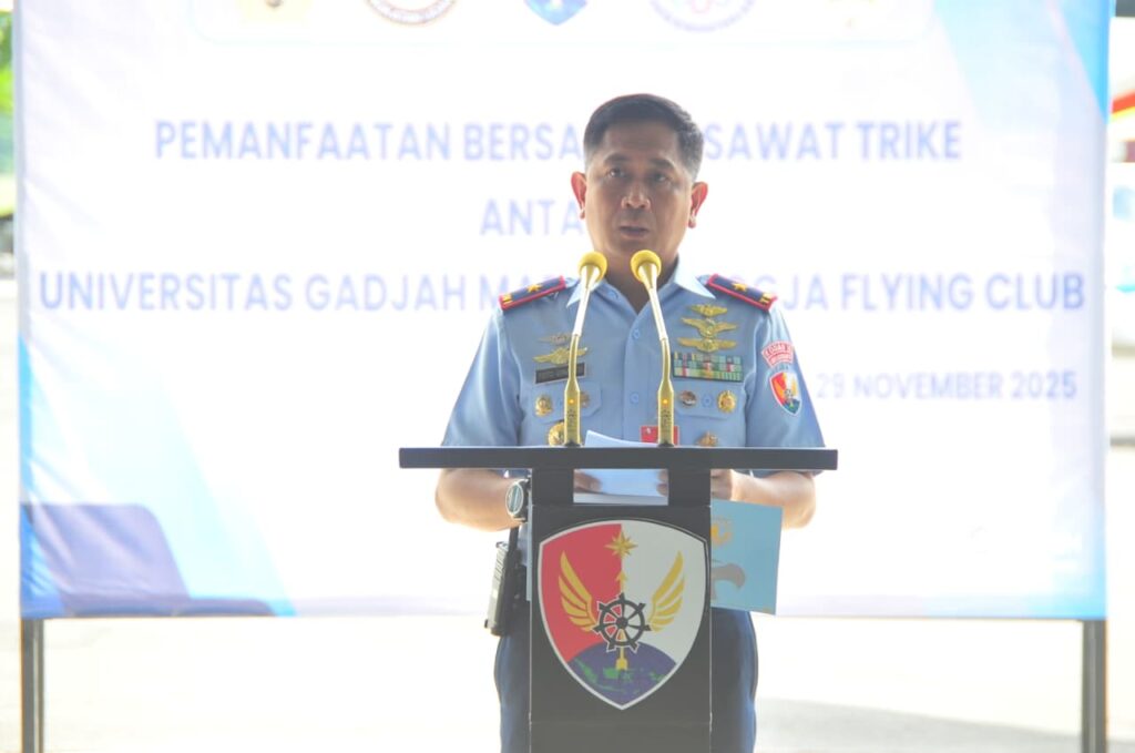 YOGYAKARTA, Cakra101.com – Pusat Teritorial TNI Angkatan Udara (Pusterau) dan Universitas Gadjah Mada (UGM) menandatangani kerja sama teritorial terkait pemanfaatan dua pesawat Microlight Trike untuk mendukung Tridharma Perguruan Tinggi serta kepentingan pertahanan dan keamanan negara. Penandatanganan dilakukan Kapusterau Marsma TNI Tjahja Elang Migdiawan, S.T., M.M., di Ballroom Gramm Hotel Yogyakarta, Jumat (28/11/2025).