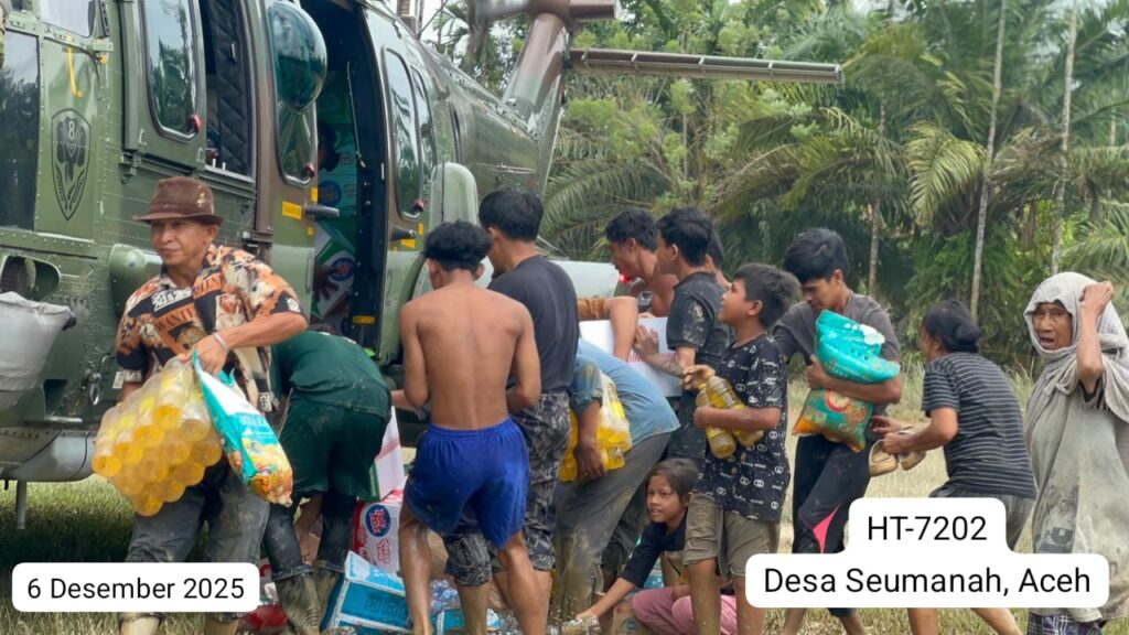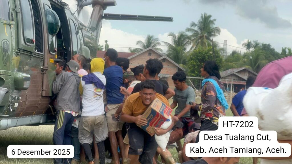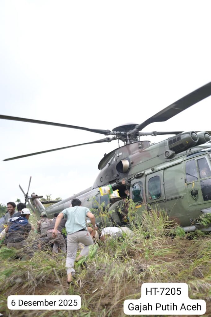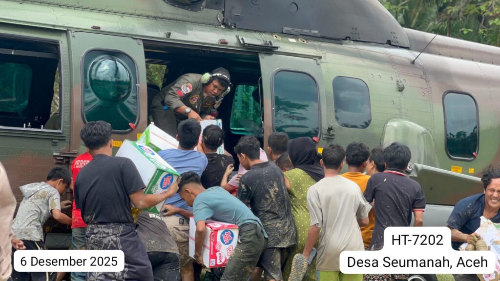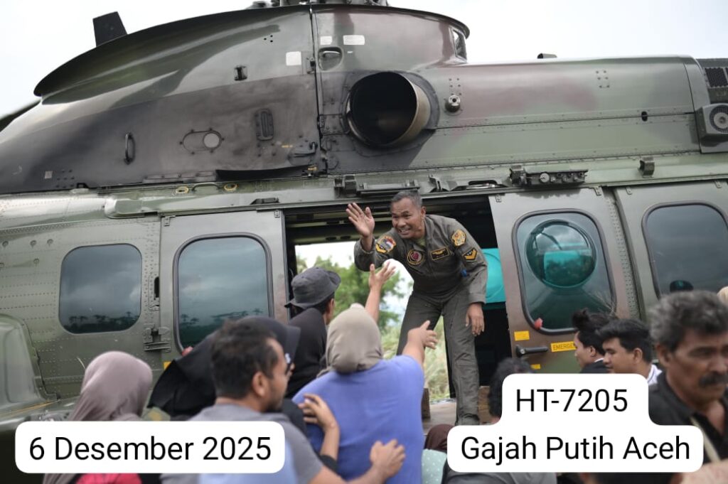 Helikopter HT-7202, yang diberangkatkan dari Lanud Sultan Iskandar Muda (SIM), mengangkut dan menyalurkan bantuan logistik menuju tiga lokasi, yaitu Desa Tualang Cut, Kabupaten Aceh Tamiang (1.200 kg), Desa Seumanah, Kabupaten Aceh Timur (2.000 kg), serta Desa Timang Gajah, Kabupaten Bener Meriah (1.000 kg).