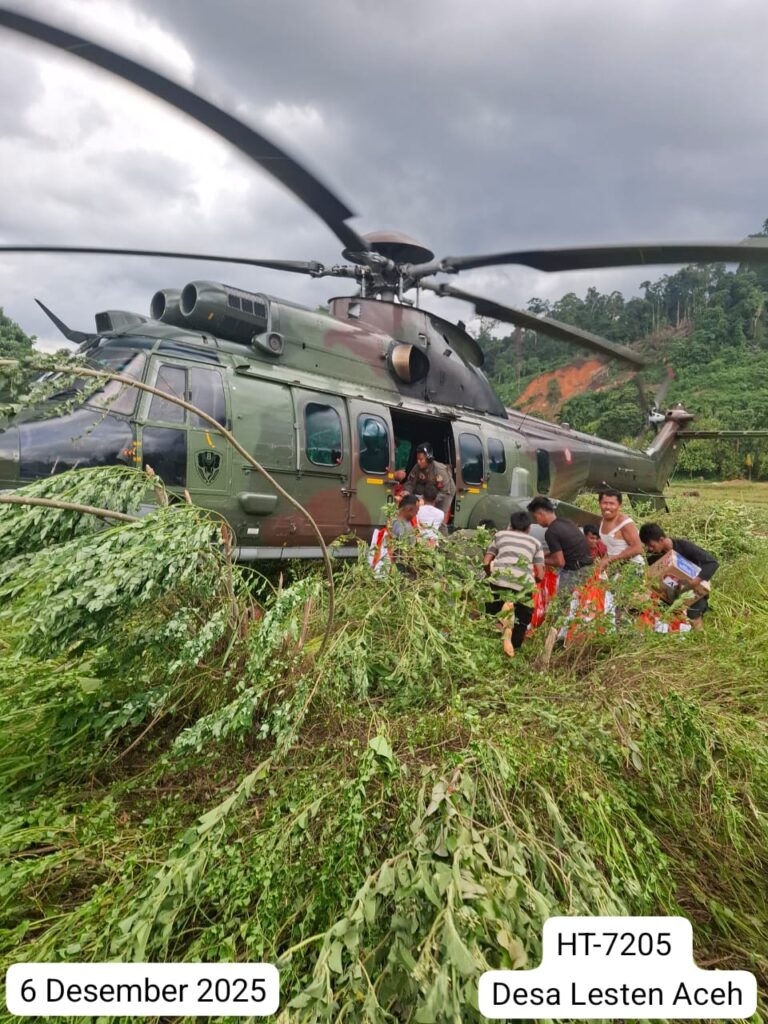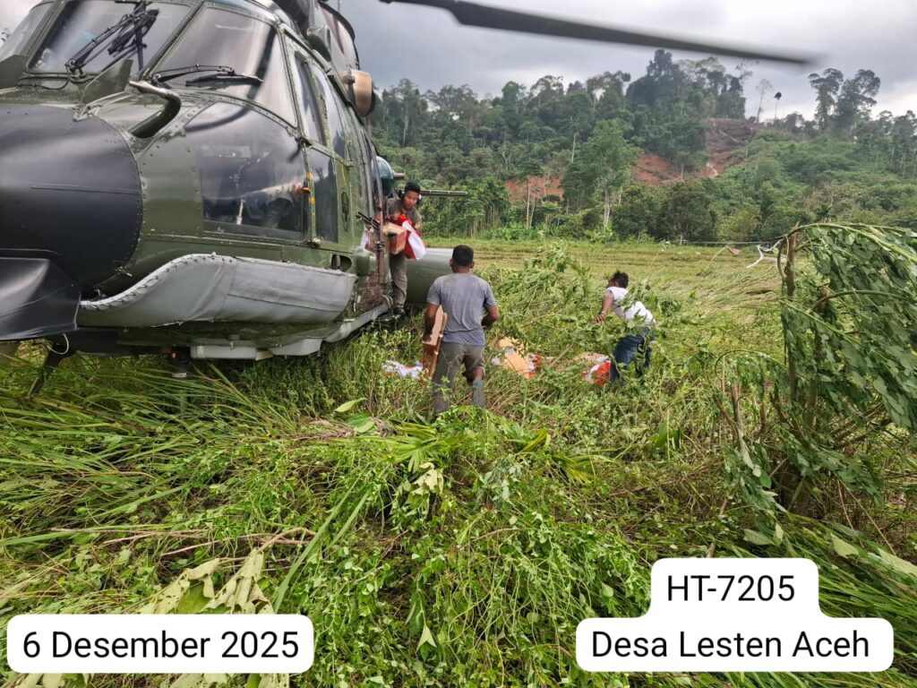 Pada hari yang sama, helikopter HT-7205 yang lepas landas dari Lanud Soewondo (SWO) Medan, turut melaksanakan misi serupa dengan menyalurkan berbagai bantuan logistik ke empat titik di Provinsi Aceh. Bantuan tersebut meliputi Bansos Rusip Antara (1.000 kg), Bansos Gajah Putih (1.000 kg), Bansos Desa Lesten (1.000 kg), dan Bansos Desa Pintu Rime (1.000 kg).