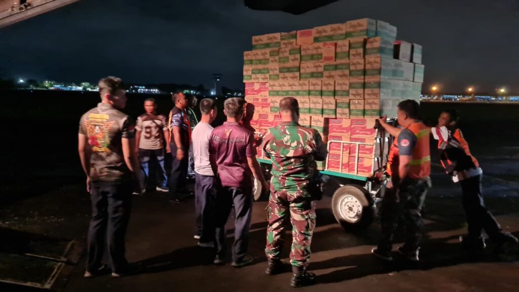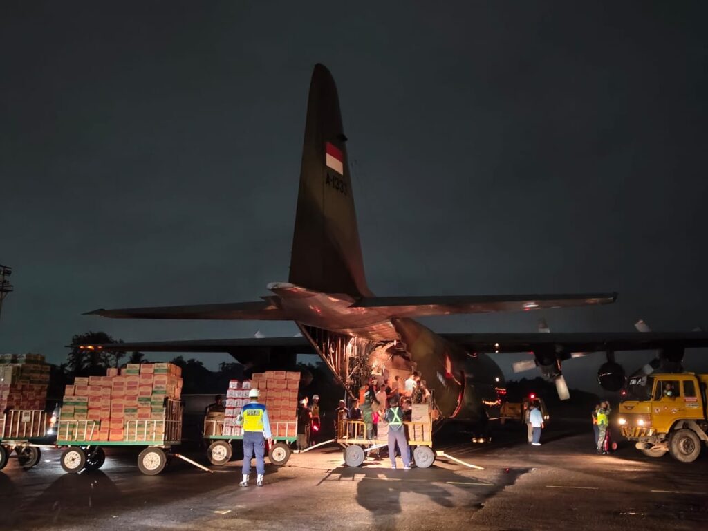 Bantuan diberangkatkan menggunakan pesawat Hercules C-130 A-1333 dari Skadron Udara 33 pada Jumat (5/12/2025).