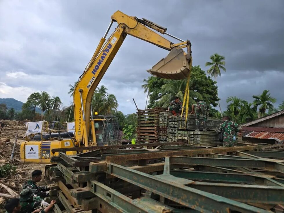 TAPANULI SELATAN, Cakra101.com –. TNI menurunkan Yonzipur I/DD untuk memasang Jembatan Bailey yang menjadi akses vital penghubung Kabupaten Tapanuli Selatan (Tapsel) dan Tapanuli Tengah (Tapteng) setelah jembatan utama terputus akibat banjir bandang. Upaya percepatan pemulihan infrastruktur ini langsung dilakukan begitu pasukan tiba di lokasi, di Desa Garoga, Kabupaten Tapanuli Selatan, Minggu (7/12/2025).