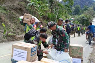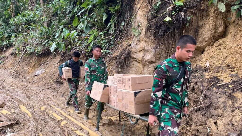 ACEH TENGAH, Cakra101.com – Personel kesehatan dari Brigif TP 90/Yudha Giri Dhanu dan Yonif TP 854/Dharma Kersaka Kodam Iskandar Muda menyalurkan obat-obatan ke wilayah terisolir akibat banjir dan tanah longsor di Kabupaten Aceh Tengah dengan berjalan kaki menembus medan berat. Kegiatan dilaksanakan pada Selasa (9/12/2025) menuju Desa Pameu dan Desa Lut Jaya, Kecamatan Rusip Antara.