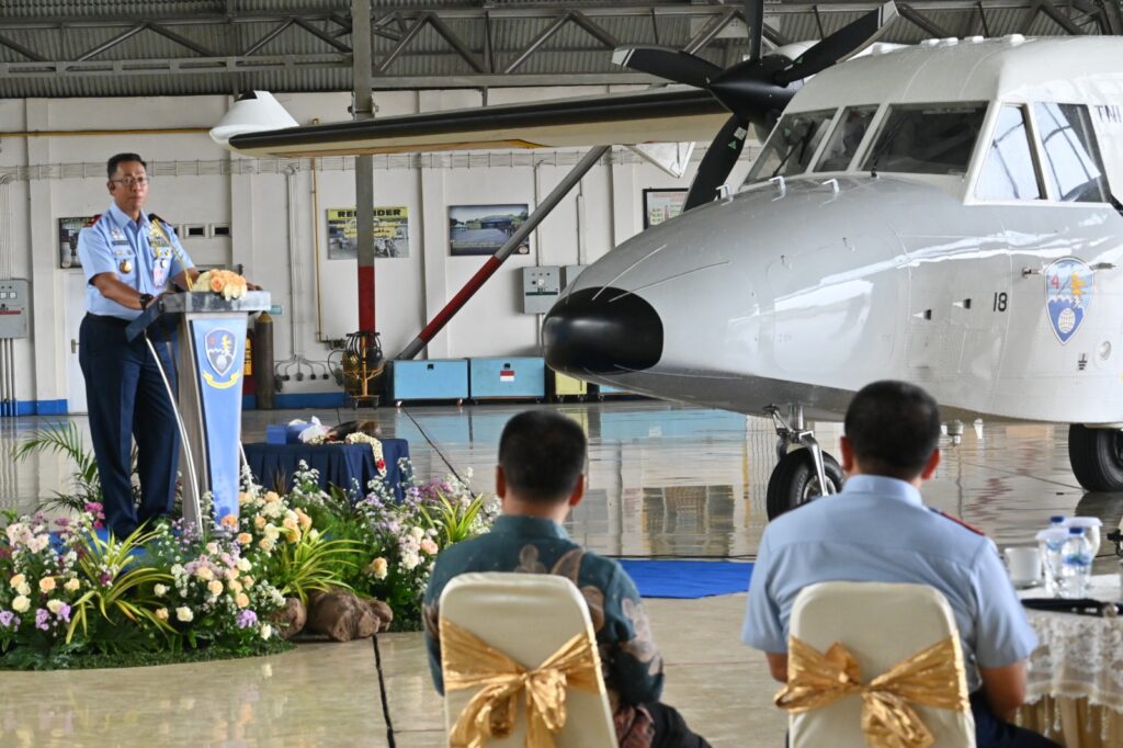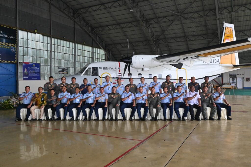 Turut hadir Kapuslaik Baloghan Kemhan Marsma TNI Catur Martowo Aji, M.Eng., Kasatgas NC-212i Kolonel Tek Hardi Tri Wahyu A., Wadan Grup Angkut Kolonel Pnb Wisnu Aji Prabowo, S.Sos., M.A.P., jajaran perwira Lanud Abdulrachman Saleh, serta perwakilan Kementerian Pertahanan dan PT Dirgantara Indonesia.