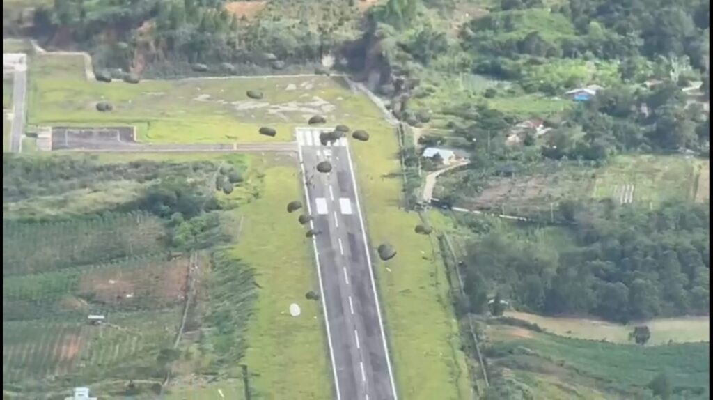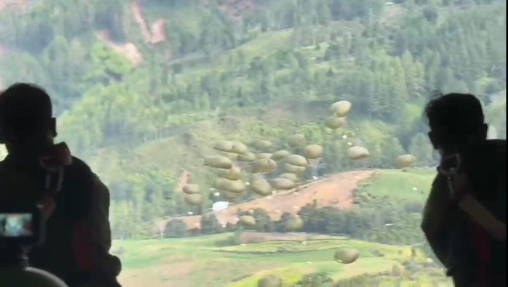 GAYO LUES, Cakra101.com – TNI Angkatan Udara kembali melaksanakan airdrop untuk menyalurkan bantuan ke Kecamatan Blangkejeren, Kabupaten Gayo Lues, Senin (8/12/2025). Upaya ini dilakukan untuk memastikan kebutuhan masyarakat tetap terpenuhi di tengah terbatasnya akses darat