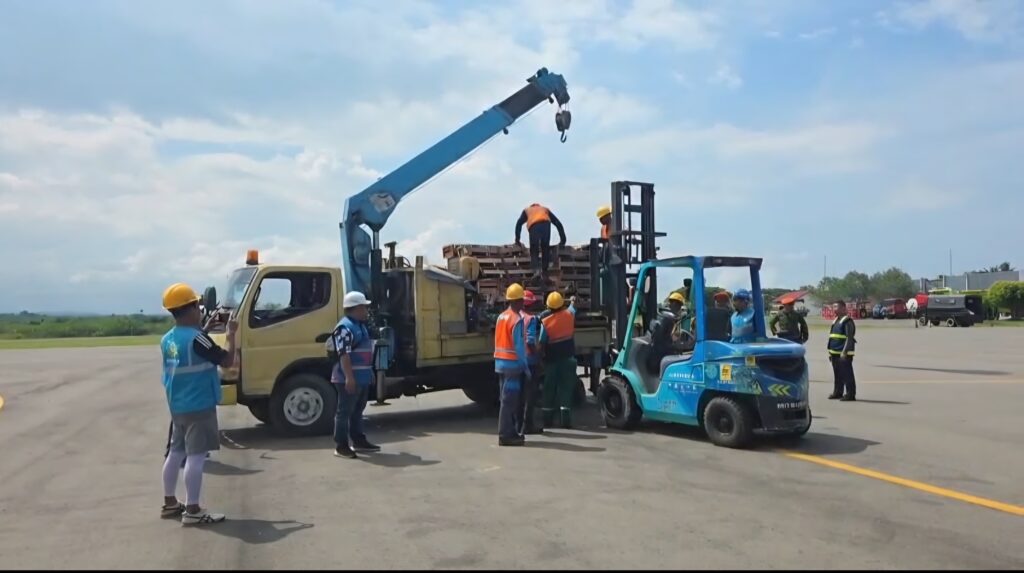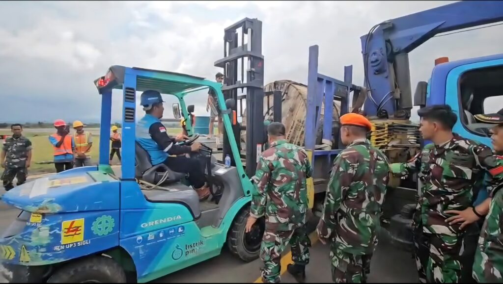 Pesawat diterbangkan oleh Letkol Pnb Putut mengangkut total 6.021 kg logistik PLN yang dibutuhkan untuk mempercepat pemulihan jaringan listrik di wilayah yang terdampak.