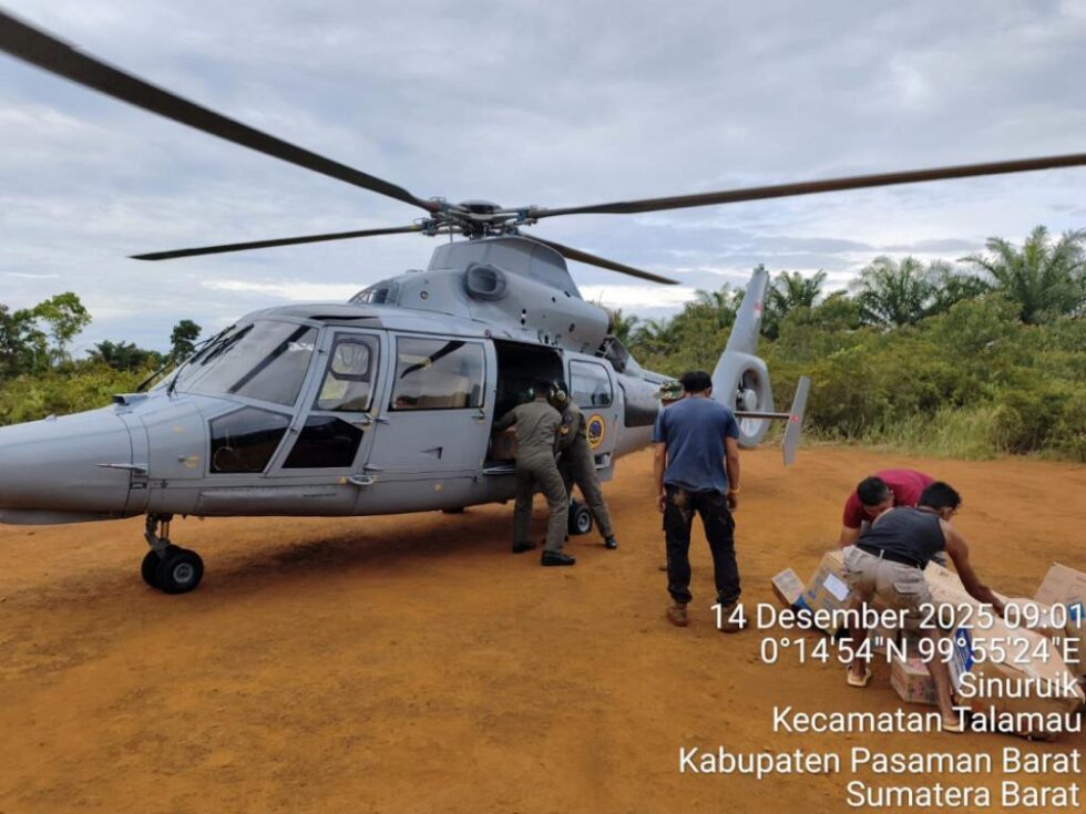 Secara simultan, sebuah Helikopter AS 565 MBe Panther (HS-1310) dikerahkan untuk mendistribusikan bantuan logistik di daerah terpencil di Kabupaten Pasaman Barat, Sumatera Barat. Helikopter Panther ini menyasar dua lokasi berbeda yang membutuhkan akses cepat dan efisien yaitu, Desa Bateh Somuik dan Desa Maligi, Kecamatan Sasak, di kedua Lokasi tersebut TNI AL menurunkan 400 kg logistik bantuan untuk masyarakat.