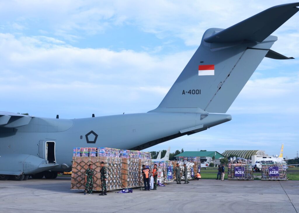 JAKARTA, Cakra101.com – Pesawat TNI Angkatan Udara A400M mendistribusikan bantuan untuk masyarakat terdampak bencana banjir di Aceh. Pesawat lepas landas dari Lanud Halim Perdanakusuma, Jakarta menuju Lanud Sultan Iskandar Muda, Aceh, Rabu (17/12/2025).