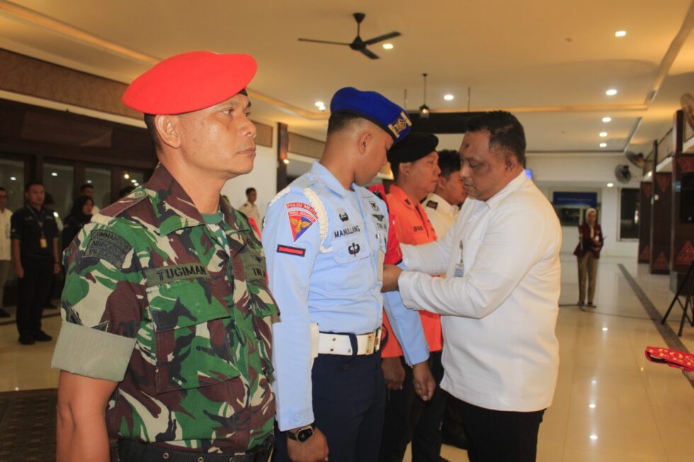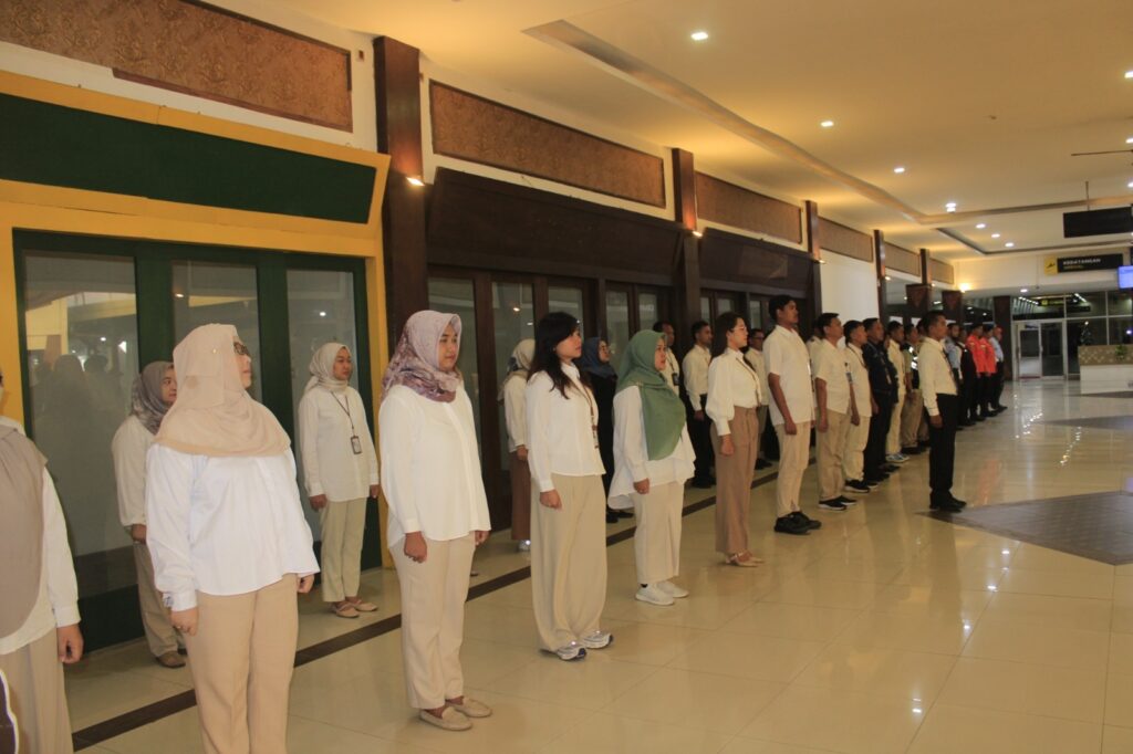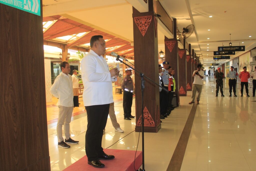 YOGYAKARTA, Cakra101.com – Personel Lanud Adisutjipto mengikuti apel pembukaan Posko Angkutan Udara Natal 2025 dan Tahun Baru 2026 di Lobby Bandara Adisutjipto, Yogyakarta, Senin (15/12/2025). Apel tersebut menandai dimulainya operasional posko pengamanan dan pelayanan penerbangan selama masa libur akhir tahun.