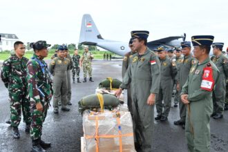 JAKARTA, Cakra101.com – TNI Angkatan Udara menyalurkan bantuan logistik melalui airdrop ke Kecamatan Serbajadi, Kabupaten Aceh Timur, Rabu (17/12/2025). Sebanyak 190 helibox dengan total berat 950 kilogram diterjunkan untuk mempercepat pendistribusian bantuan ke wilayah tersebut.