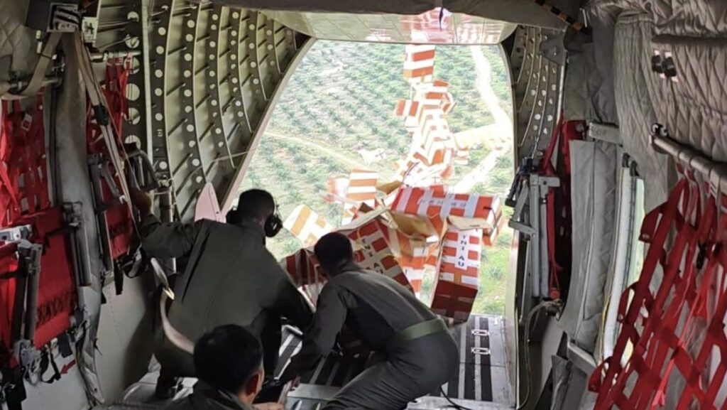 Penyaluran bantuan melalui airdrop dipilih untuk memastikan bantuan dapat segera diterima masyarakat, sehingga proses pendistribusian dapat berjalan lebih cepat dan efektif.