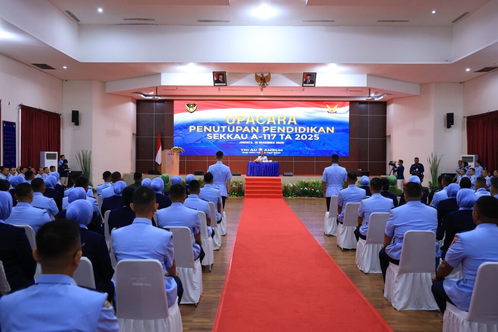 JAKARTA, Cakra101.com – Komandan Kodiklatau Marsdya TNI Dr. T.B.H. Age Wiraksono, S.I.P., M.A. secara resmi menutup Pendidikan Sekolah Komando Kesatuan Angkatan Udara (Sekkau) Angkatan ke-117 Tahun 2025 di Gedung Pramanala Sekkau, Jumat (19/12/2025).