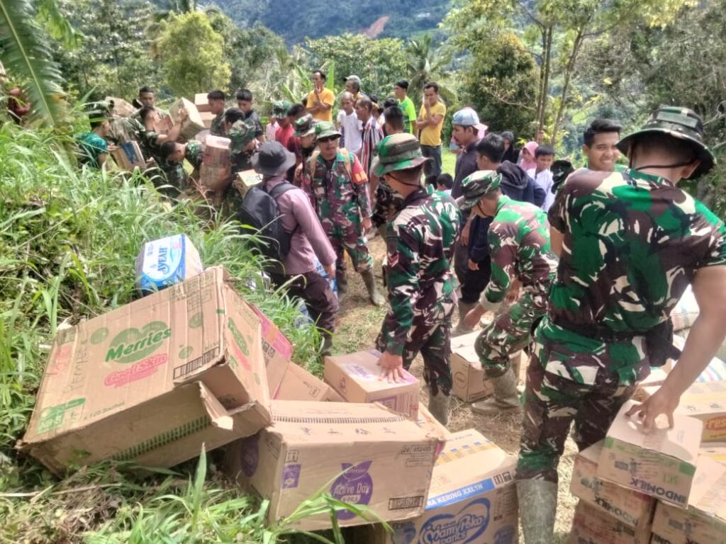 Usai pendaratan, prajurit TNI AU bersama unsur TNI lainnya bergerak cepat menurunkan bantuan dari helikopter. Bantuan tersebut selanjutnya disalurkan kepada masyarakat Nagari Sungai Limau melalui kerja sama yang solid antara aparat dan warga setempat.