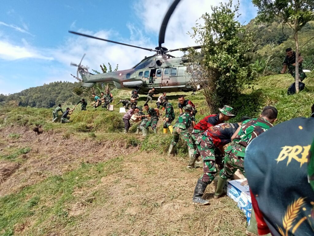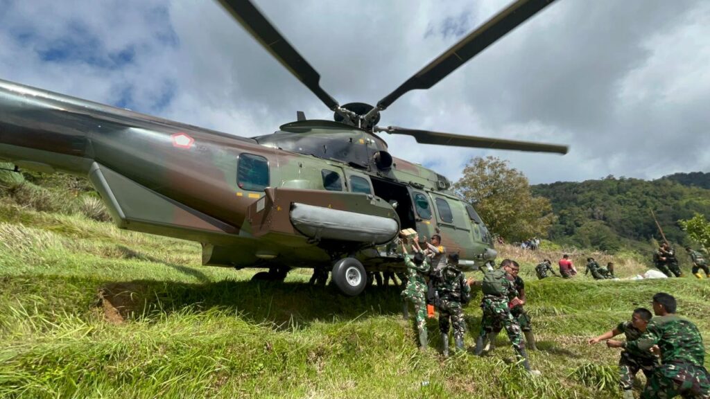 Helikopter Caracal bernomor registrasi HT-7206 lepas landas dari Lanud Sutan Sjahrir dengan membawa 2,33 ton bantuan logistik. Setibanya di lokasi, dengan melihat kondisi medan yang ada helikopter melakukan pendaratan pada area terbatas di lereng bukit yang menuntut presisi tinggi dan perhitungan yang matang untuk mendistribusikan bantuan kepada masyarakat.