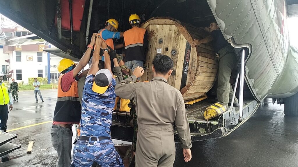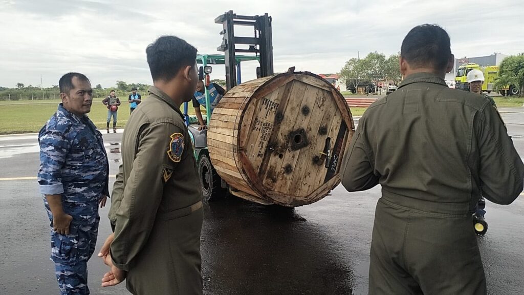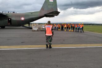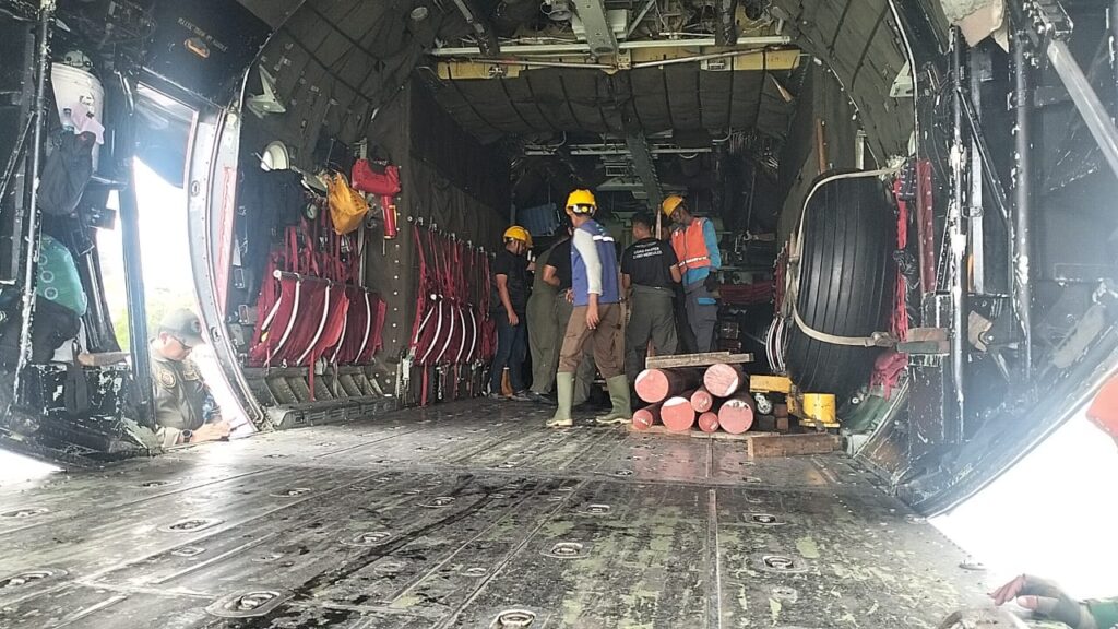 LHOKSEUMAWE, Cakra101.com – TNI Angkatan Udara terus mendukung percepatan pemulihan jaringan kelistrikan di wilayah dataran tinggi Aceh melalui dukungan mobilitas udara. Pesawat angkut berat C-130 Hercules TNI Angkatan Udara dengan nomor registrasi A-1315 menjalankan misi pengangkutan material kelistrikan milik PT PLN (Persero) untuk mendukung pemulihan pasokan listrik di Kabupaten Bener Meriah.
