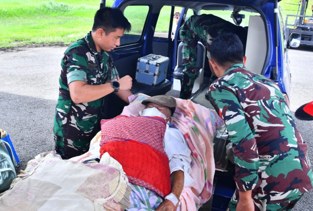 MEDAN, Cakra101.com – TNI AU bergerak cepat mengevakuasi seorang pasien lanjut usia (lansia) melalui jalur udara dari Bandara Rembele Kabupaten Bener Meriah menuju Lanud Soewondo Medan, Minggu (21/12/2025). Evakuasi ini dilakukan untuk mempercepat penanganan medis di tengah keterbatasan akses darat pascabencana.