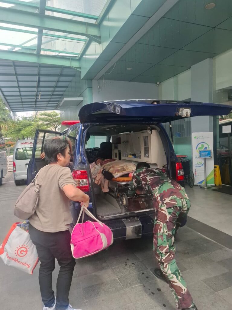 Setibanya di Lanud Soewondo, pasien langsung dievakuasi menggunakan ambulans menuju RS Murni Teguh, Medan untuk penanganan lebih lanjut.