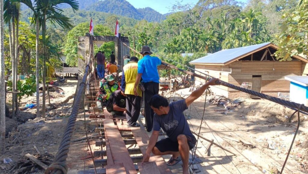 Perbaikan dilakukan secara gotong royong sebagai upaya membuka kembali akses vital penghubung antar desa yang sebelumnya terputus. Jembatan gantung tersebut merupakan satu-satunya akses utama warga untuk beraktivitas, termasuk anak-anak menuju sekolah serta masyarakat yang mengangkut hasil kebun.