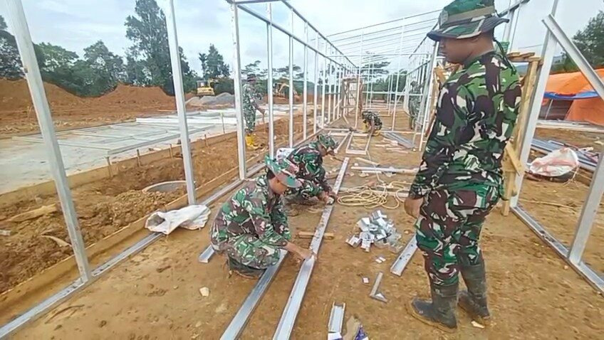 Hingga saat ini, progres pembangunan menunjukkan perkembangan bertahap, antara lain pengecoran lantai Barak 4 mencapai 30 persen, perangkaan baja ringan Barak 1 sebesar 35 persen, serta Barak 2 sekitar 10 persen.