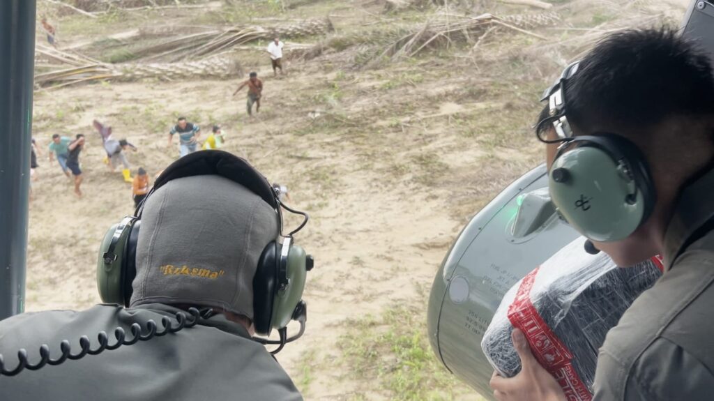 Sebagai tindak lanjut atas inisiatif tersebut, TNI Angkatan Udara mengerahkan Helikopter Super Puma/ H-3217 untuk menyalurkan bantuan bahan pangan ke Desa Sekumur seberat 500 kilogram, Kamis (25/12/2025).