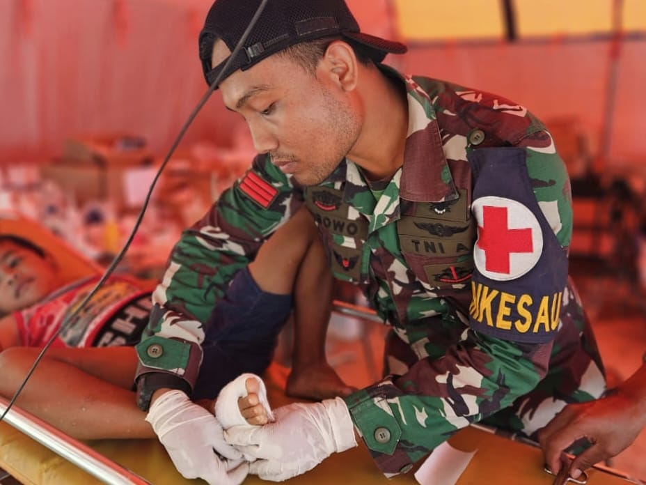 Satgas Kes Puskes TNI melibatkan 321 personel kesehatan yang terdiri atas dokter spesialis, dokter umum, dan paramedis, yang disebar di wilayah Aceh, Sumatra Utara, dan Sumatra Barat. Selain pelayanan medis, Satgas Kes juga memberikan layanan pemulihan psikologis (trauma healing) kepada para korban bencana.