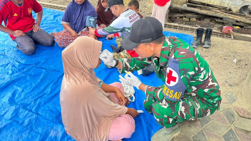 ACEH TAMIANG, Cakra101.com – Personel Batalyon Kesehatan TNI Angkatan Udara (Yonkesau) yang tergabung dalam Satuan Tugas Kesehatan (Satgas Kes) Pusat Kesehatan (Puskes) TNI melaksanakan pelayanan kesehatan bagi warga terdampak bencana alam di Aceh Tamiang, Provinsi Aceh.