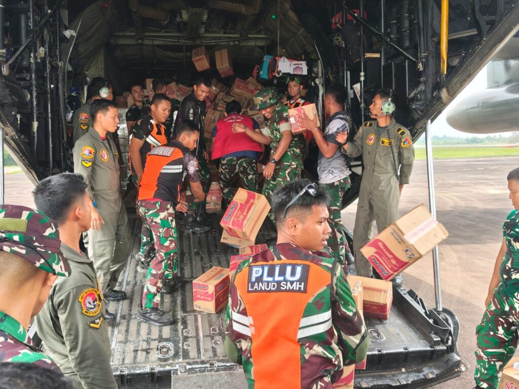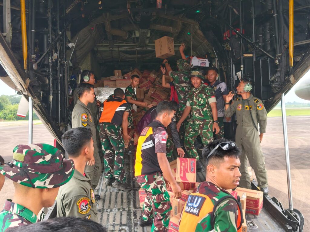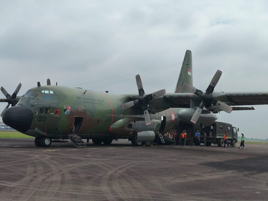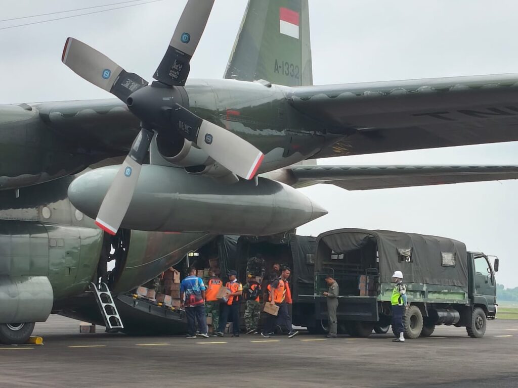 Bantuan tersebut diterbangkan menggunakan pesawat Hercules C-130 Hercules TNI Angkatan Udara dari Skadron Udara 33.