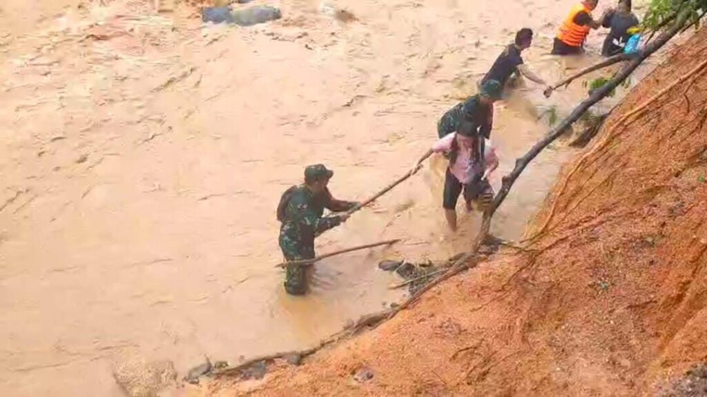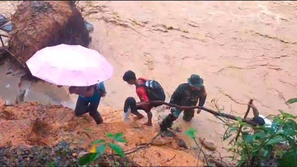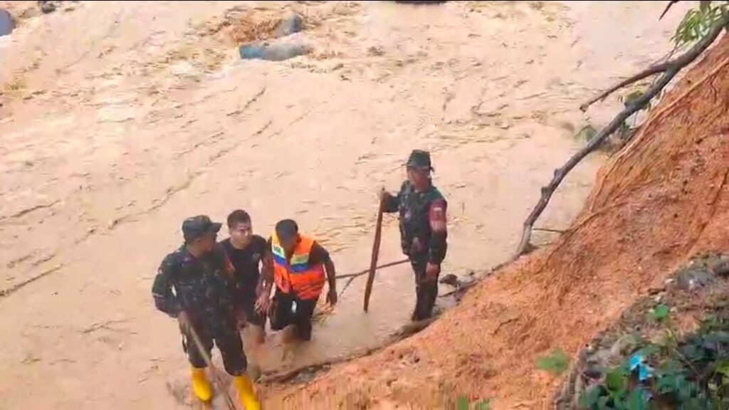 TAPANULI TENGAH, Cakra101.com – Satgas Penanggulangan Bencana Alam (Gulbencal) Kodim 0211/Tapanuli Tengah mengevakuasi puluhan warga yang terjebak banjir susulan akibat tingginya curah hujan di Kecamatan Tukka, Kabupaten Tapanuli Tengah, Jumat (2/1/2026). Banjir terjadi di sekitar aliran Sungai Aek Harse saat warga dari sejumlah desa hendak menyeberang menuju lokasi pengungsian.