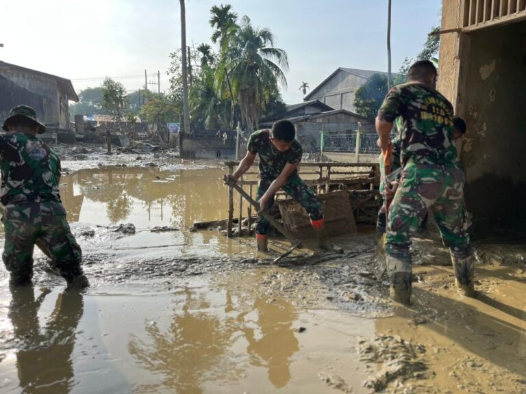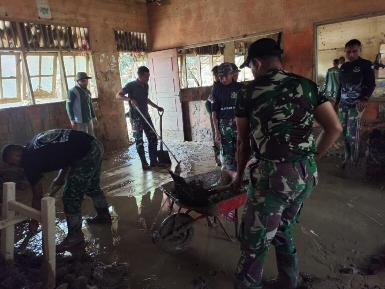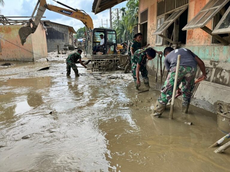 ACEH TAMIANG, Cakra101.com – TNI Angkatan Darat terus mendukung percepatan pemulihan pascabencana banjir bandang dan tanah longsor di Kabupaten Aceh Tamiang, salah satunya melalui pembersihan fasilitas pendidikan. Ratusan prajurit TNI AD dari Satgas Gulbencal Yonif 115/Macan Leuser melaksanakan karya bakti membersihkan SD Negeri 04 Kuala Simpang, Minggu (4/1/2026), agar aktivitas belajar mengajar dapat segera kembali berjalan.