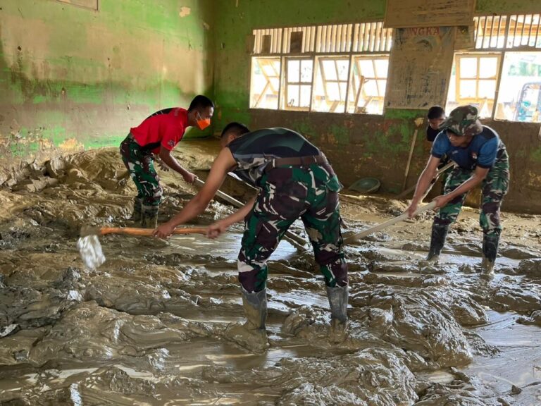 Selain ruang kelas dan halaman sekolah, prajurit juga membersihkan atap bangunan dari tumpukan ranting dan kayu yang terbawa arus banjir. Langkah ini dilakukan untuk memastikan lingkungan sekolah kembali aman dan layak digunakan.