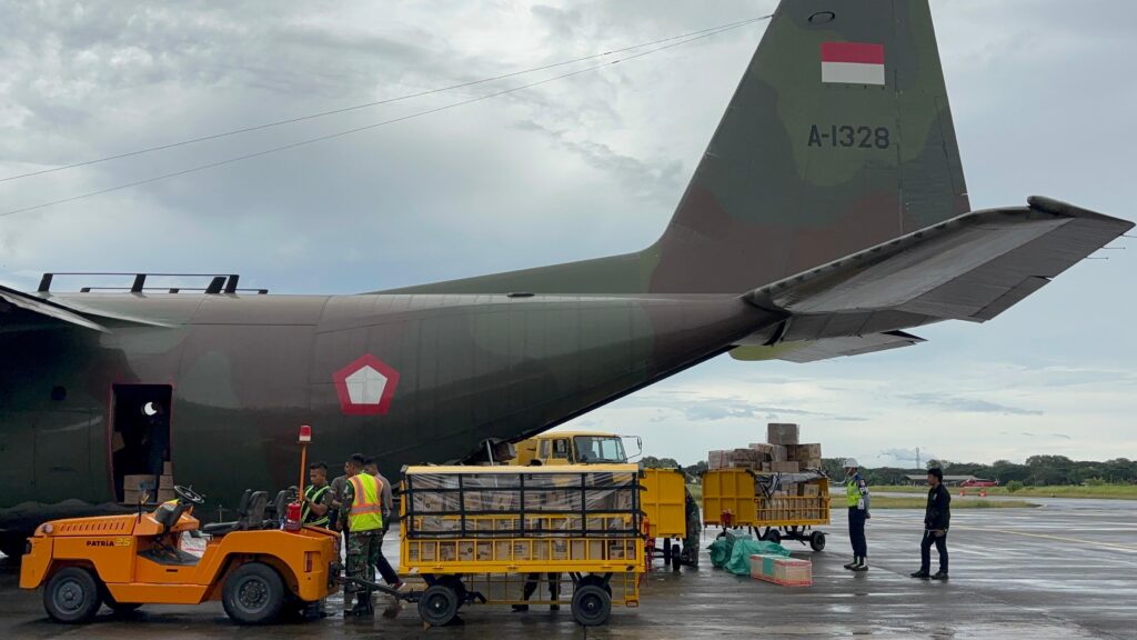 Setibanya di Aceh, logistik diterima di Pos Pendamping Nasional Bencana Hidrometeorologi Provinsi Aceh yang berada di Shelter Galaxy Lanud Sultan Iskandar Muda. Dari titik tersebut, bantuan akan didistribusikan secara bertahap ke daerah terdampak.