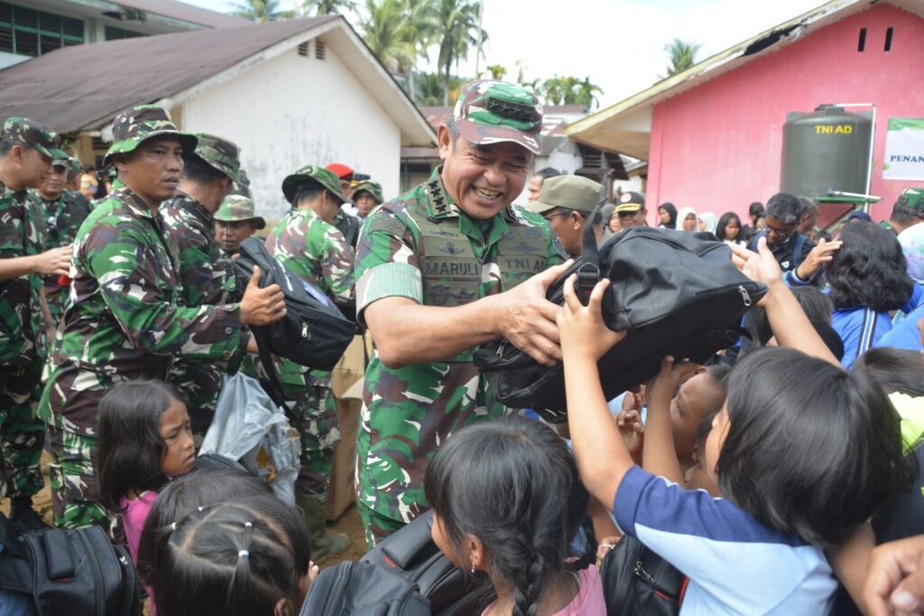 Selain meninjau pembangunan jembatan, Kasad juga meninjau sejumlah fasilitas pendidikan terdampak bencana, yakni SDN 152981 A, SDN 152982 B, serta SD Darurat di Desa Hutanabolon. Pada kesempatan tersebut, Kasad menyerahkan bantuan perlengkapan sekolah berupa tas, buku tulis, alat tulis, dan kebutuhan pendukung belajar lainnya kepada para siswa.