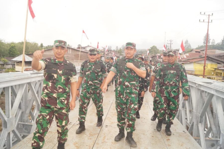 Kasad didampingi Bupati Bener Meriah Ir. Tagore Abubakar serta tokoh adat setempat secara langsung meresmikan jembatan tersebut sebagai bagian dari percepatan pemulihan infrastruktur vital pascabencana, khususnya pada jalur strategis penghubung antarwilayah.