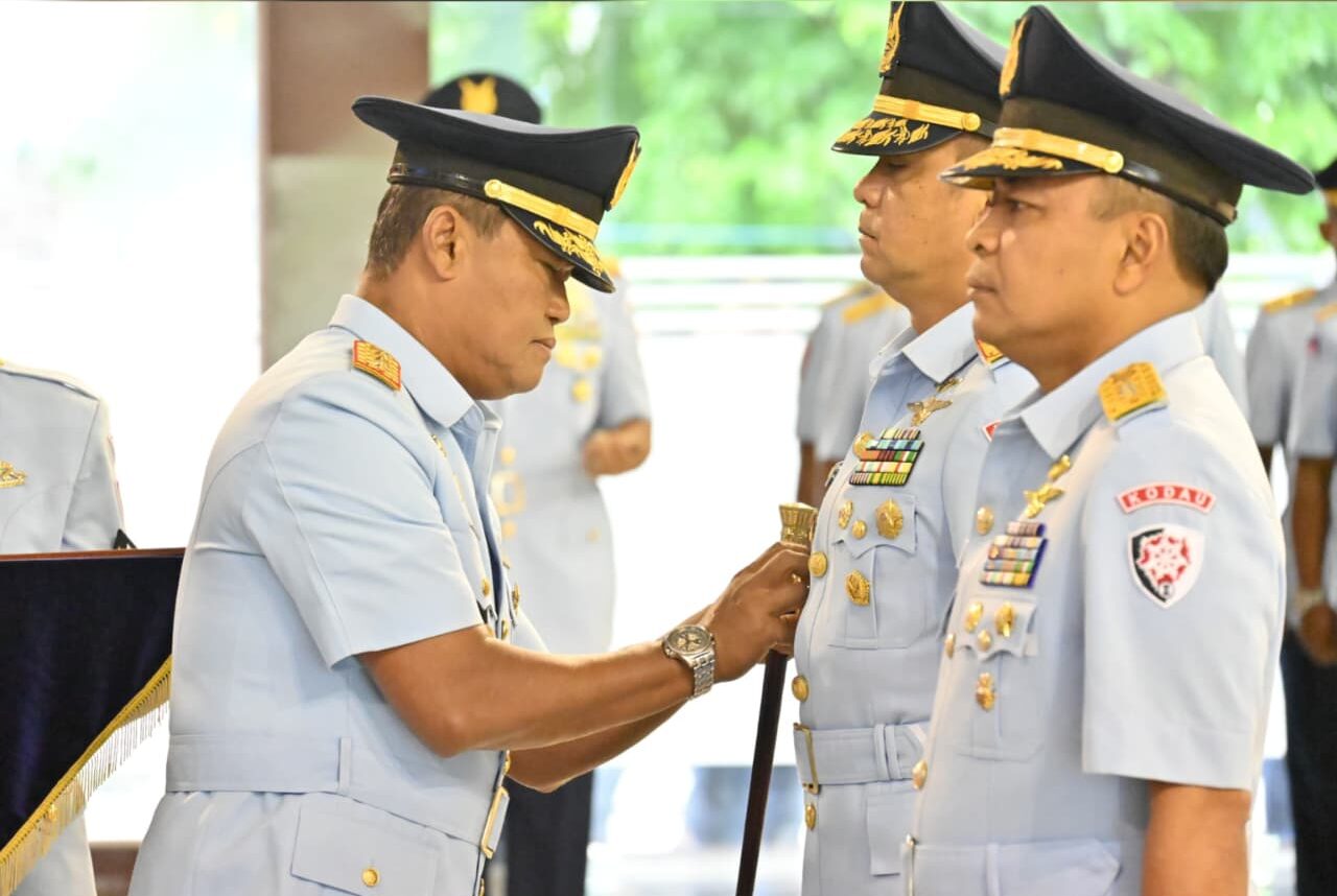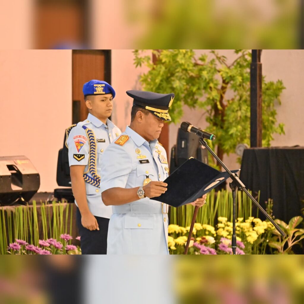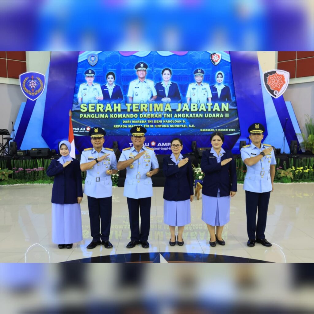 MAKASSAR, Cakra101.com – Panglima Koops Udara Nasional (Pangkoopsudnas) Marsdya TNI Minggit Tribowo, S.I.P., memimpin upacara serah terima jabatan (Sertijab) Panglima Komando Daerah TNI Angkatan Udara II (Pangkodau II) di Mako Kodau II, Makassar Sulawesi Selatan. Jabatan Pangkodau II diserahterimakan dari Marsda TNI Deni Hasoloan Simanjuntak kepada Marsda TNI Mochamad Untung Suropati, S.E., Jumat (9/1/2026).