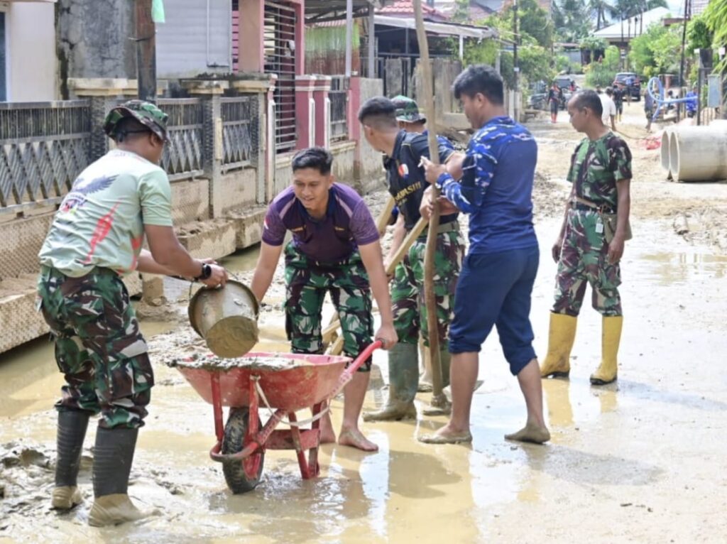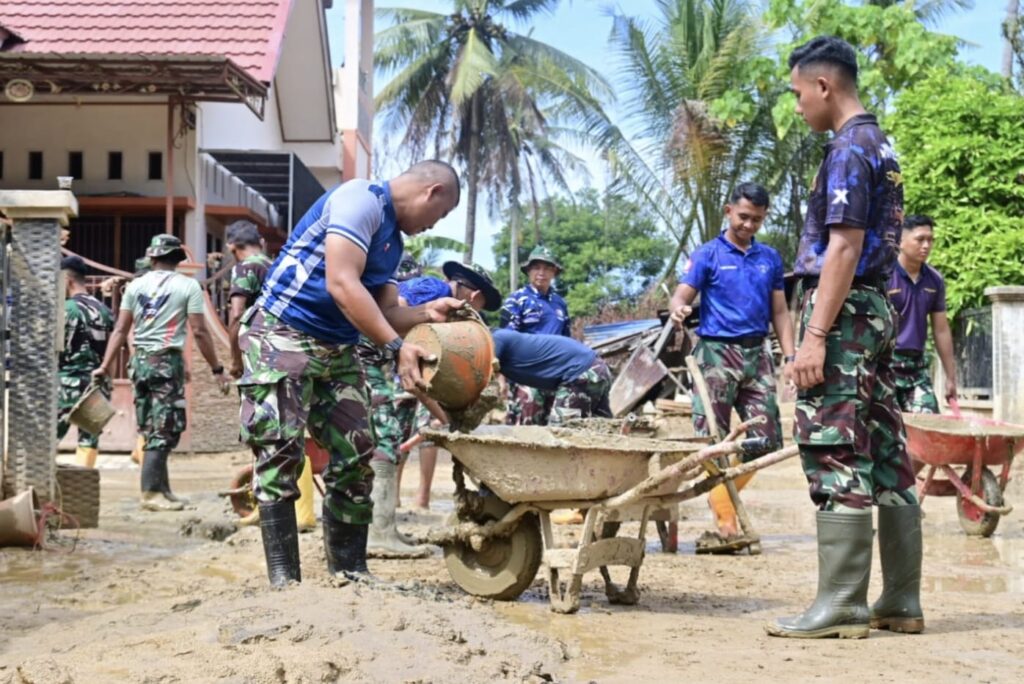 Sejak sepekan terakhir, prajurit bahu-membahu membersihkan sisa lumpur dan sampah yang menutup permukiman, jalan, serta fasilitas umum lainnya. Aksi sosial ini dilakukan secara intensif untuk mempercepat pemulihan kondisi lingkungan agar masyarakat dapat kembali beraktivitas dengan aman dan nyaman.