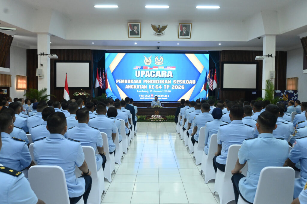 BANDUNG BARAT, Cakra101.com –. Komandan Sekolah Staf dan Komando Angkatan Udara (Danseskoau) Marsda TNI Dr. Jorry S. Koloay, S.I.P., M.Han., secara resmi membuka Pendidikan Perwira Siswa (Pasis) Seskoau Angkatan ke-64 Tahun Pelajaran 2026 di Bangsal Stratasala Seskoau, Lembang, Bandung Barat, Selasa (13/1/2026).